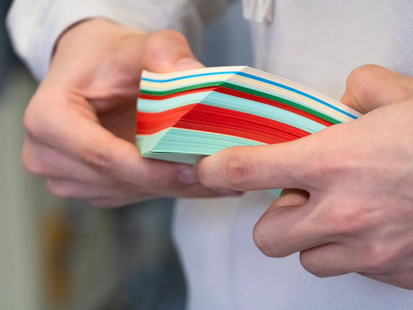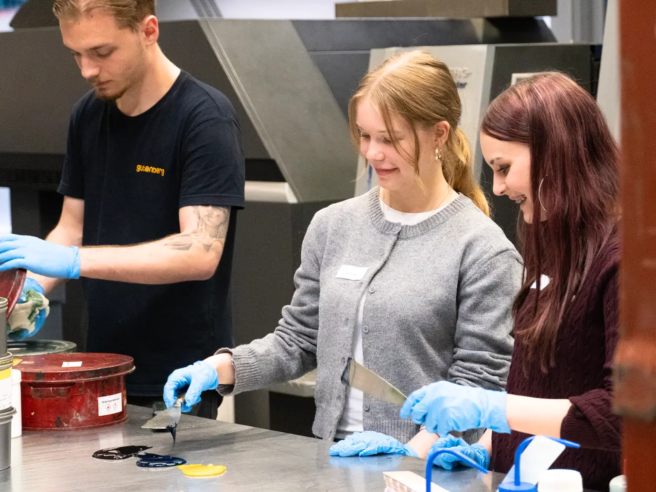 Im Offsetdruck wurde es technisch: Die Schülerinnen und Schüler lernten den Druckprozess genauer kennen, warfen einen Blick in die Maschine und erfuhren, wie Druckplatten eingesetzt werden. Beim Farbenmischen konnten sie zudem selbst Hand anlegen – und das auf spielerische Weise: In einem kleinen Wettbewerb galt es, eine vorgegebene Farbe möglichst genau nachzumischen. Wer den Farbton am besten traf, hatte gewonnen. So wurde nicht nur das Verständnis für Farben geschärft, sondern auch der Ehrgeiz geweckt.
