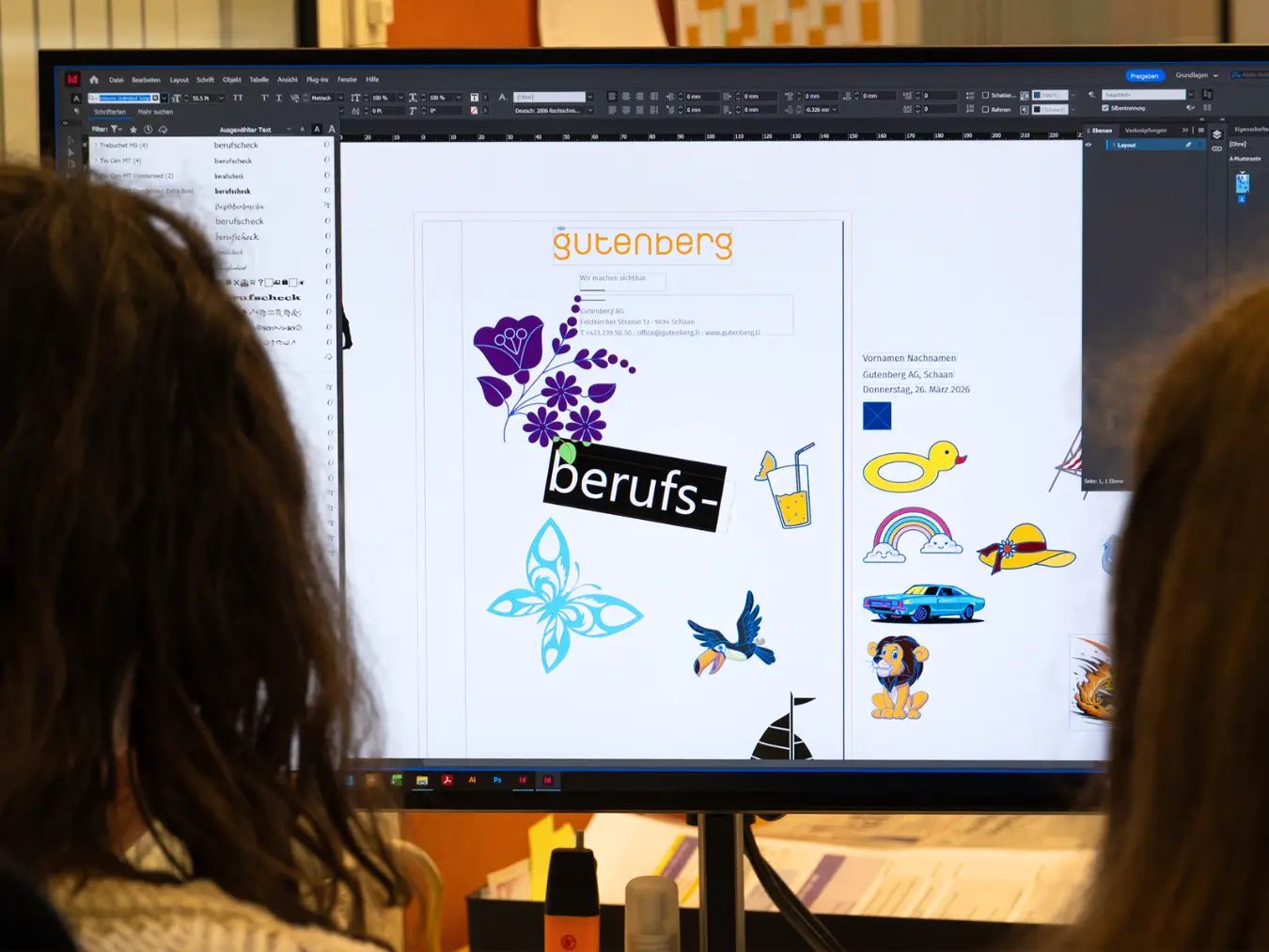 BerufsCheck 2026: Am Nachmittag des 26. März fand bei der Gutenberg AG der diesjährige BerufsCheck statt. Auch dieses Jahr setzten wir bewusst auf praxisnahe Einblicke statt trockener Präsentationen. Die Schülerinnen und Schüler konnten an verschiedenen Posten aktiv mitarbeiten, Berufe kennenlernen und ihre eigenen kreativen Ideen umsetzen.