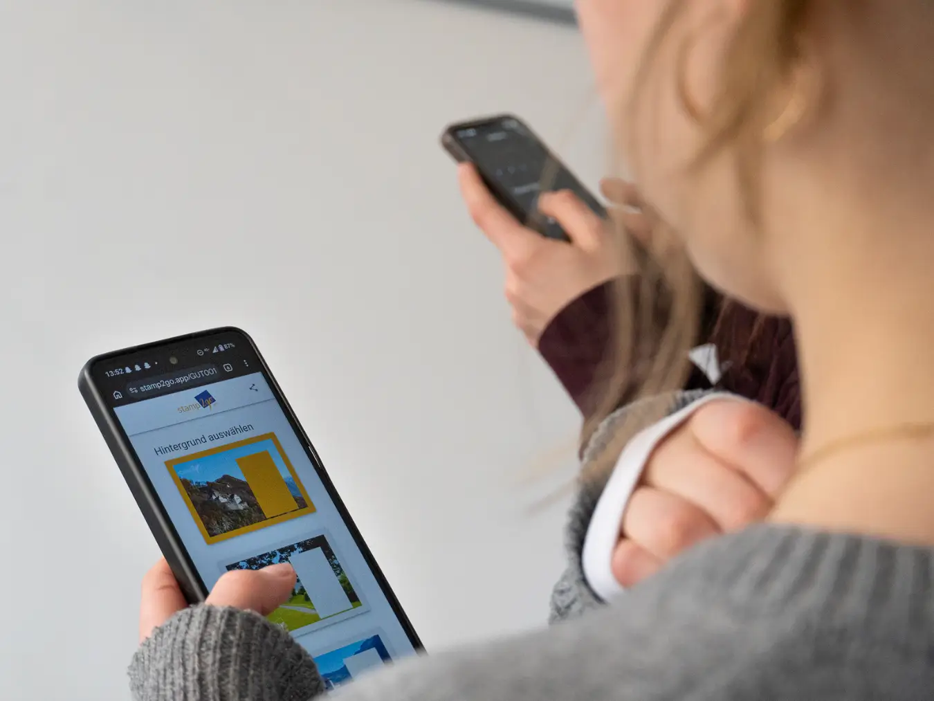 Zum Einstieg ging es direkt kreativ los: In der Abteilung Digital Media gestalteten die Jugendlichen ihre eigene stamp2go-Briefmarke – und das direkt auf dem Handy. Mit eigenen Fotos und einer Vielzahl an möglichen Hintergrundbildern entstanden individuelle Designs, die anschliessend vor Ort ausgedruckt wurden. So konnten die Teilnehmenden ihr persönliches Ergebnis gleich in den Händen halten.